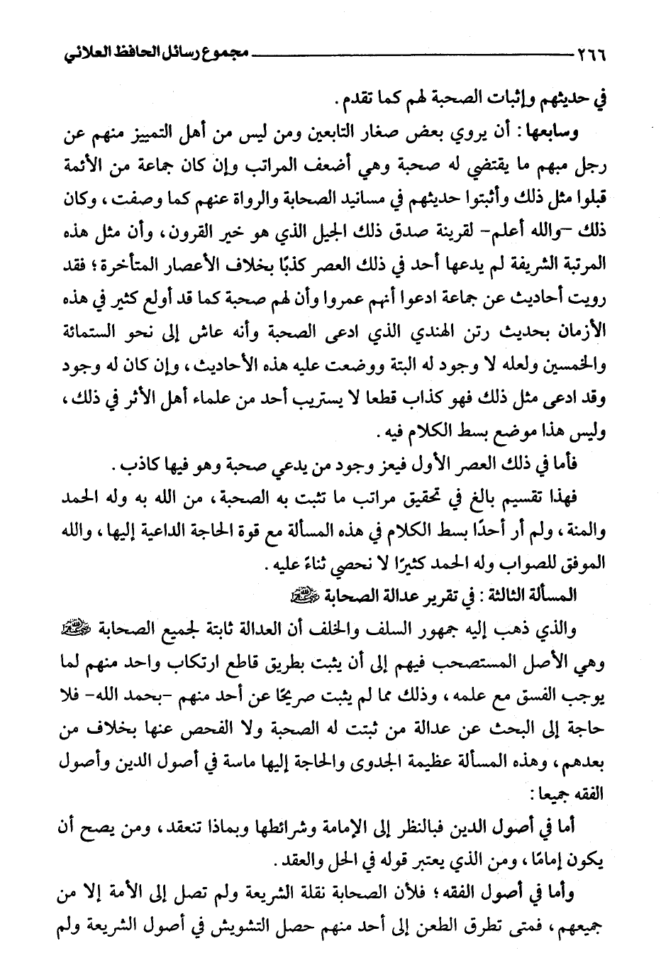 المسألة الثالثة: فى تقرير عدالة الصحابة -رضي اللَّه عنهم-