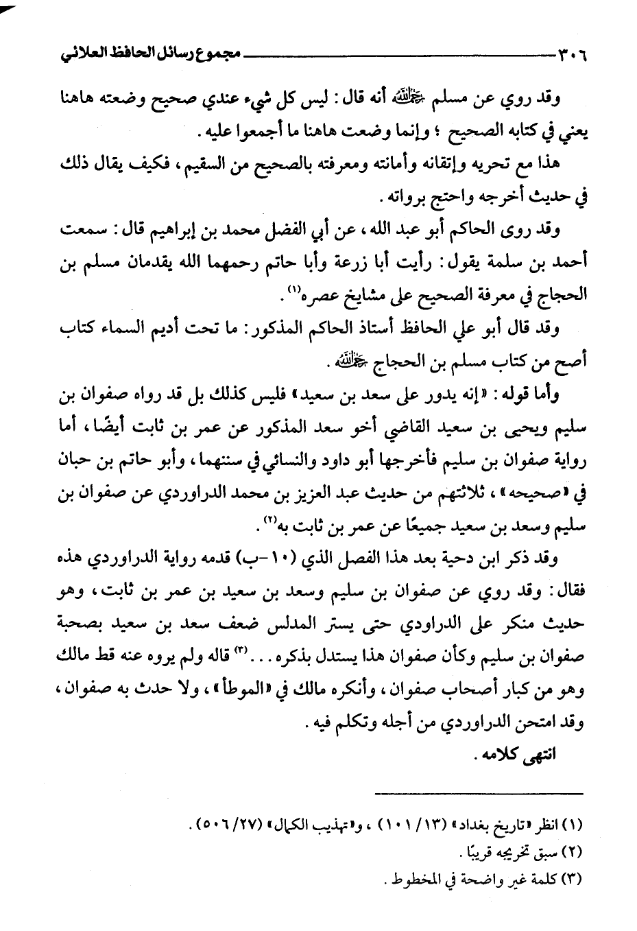 وقد روي عن مسلم رحمه اللَّه أنه قال: ليس كل شيء عندي صحيح وضعته ها هنا يعني في كتابه الصحيح؛ وإنما وضعت ها هنا ما أجمعوا عليه.