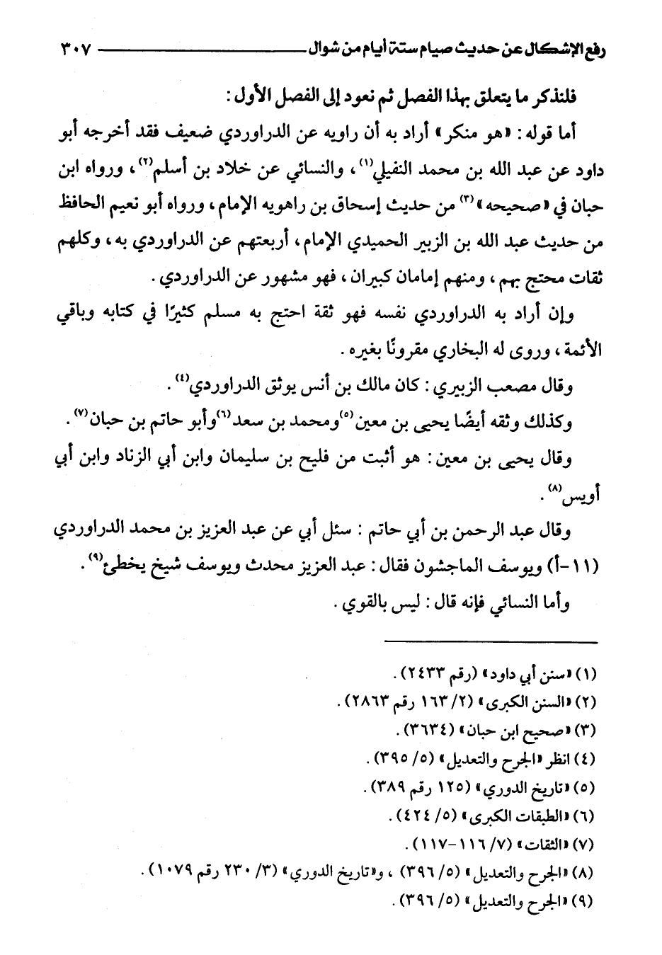 أما قوله: "هو منكر" أراد به أن راويه عن الدراوردي ضعيف فقد أخرجه أبو داود عن عبد اللَّه بن محمد النفيلي (¬1)، والنسائي عن خلاد بن أسلم (¬2)، ورواه ابن حبان في "صحيحه" (¬3) من حديث إسحاق بن واهويه الإمام، ورواه أبو نعيم الحافظ من حديث عبد اللَّه بن الزبير الحميدي الإمام، أربعتهم عن الدراوردي به، وكلهم ثقات محتج بهم، ومنهم إمامان كبيران، فهو مشهور عن الدراوردي.