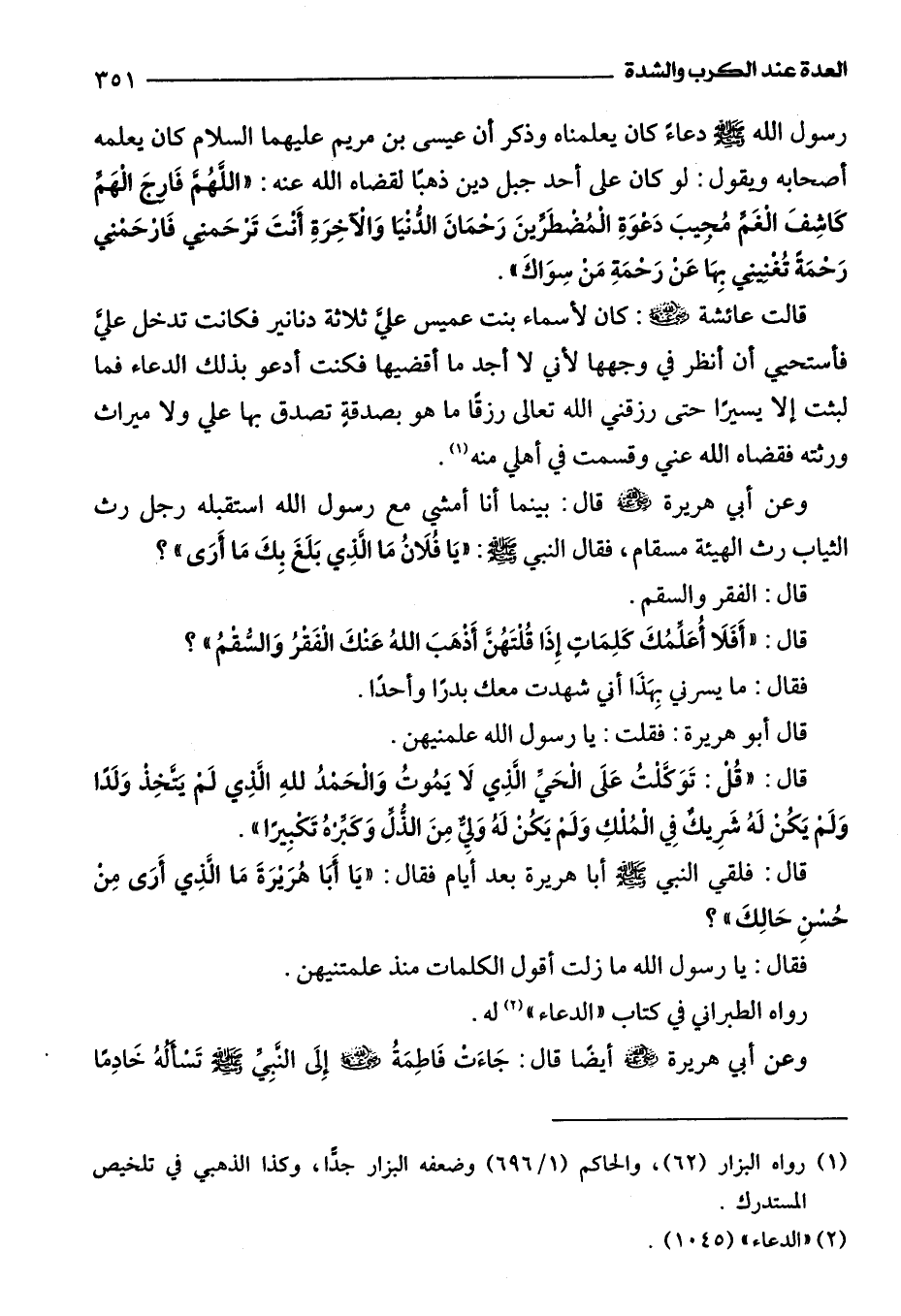 قال: "أَفَلَا أُعَلِّمُكَ كلِمَاتٍ إِذَا قُلْتَهُنَّ أَذْهَبَ اللَّهُ عَنْكَ الْفَقْرُ وَالسُّقْمُ"؟