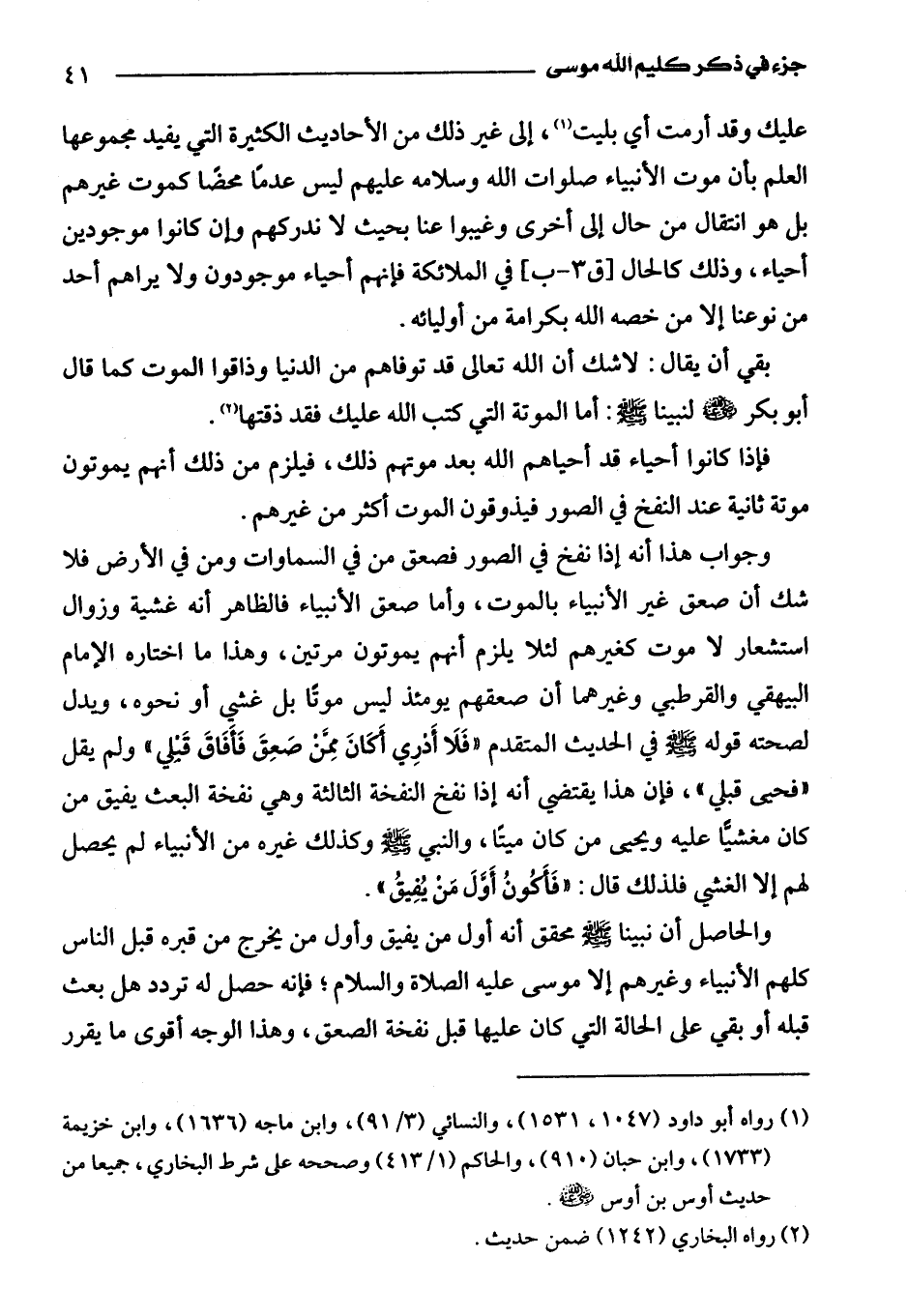 والحاصل أن نبينا -صلى اللَّه عليه وسلم- محقق أنه أول من يفيق وأول من يخرج من قبره قبل الناس كلهم الأنبياء وغيرهم إلا موسى عليه الصلاة والسلام؛ فإنه حصل له تردد هل بعث قبله أو بقي على الحالة التي كان عليها قبل نفخة الصعق، وهذا الوجه أقوى ما يقرر