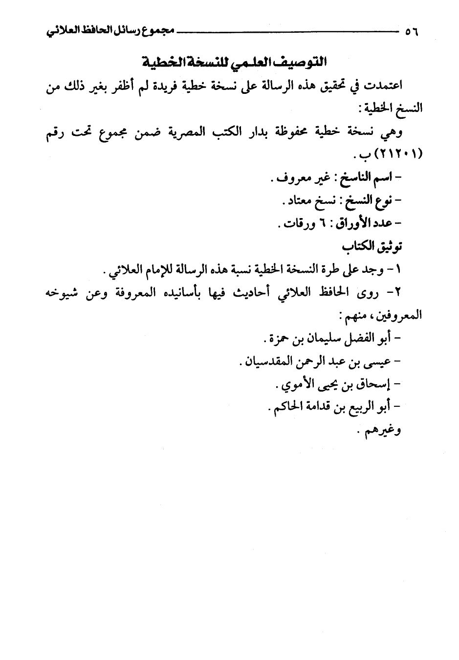 1 - وجد على طرة النسخة الخطية نسبة هذه الرسالة للإمام العلائي.