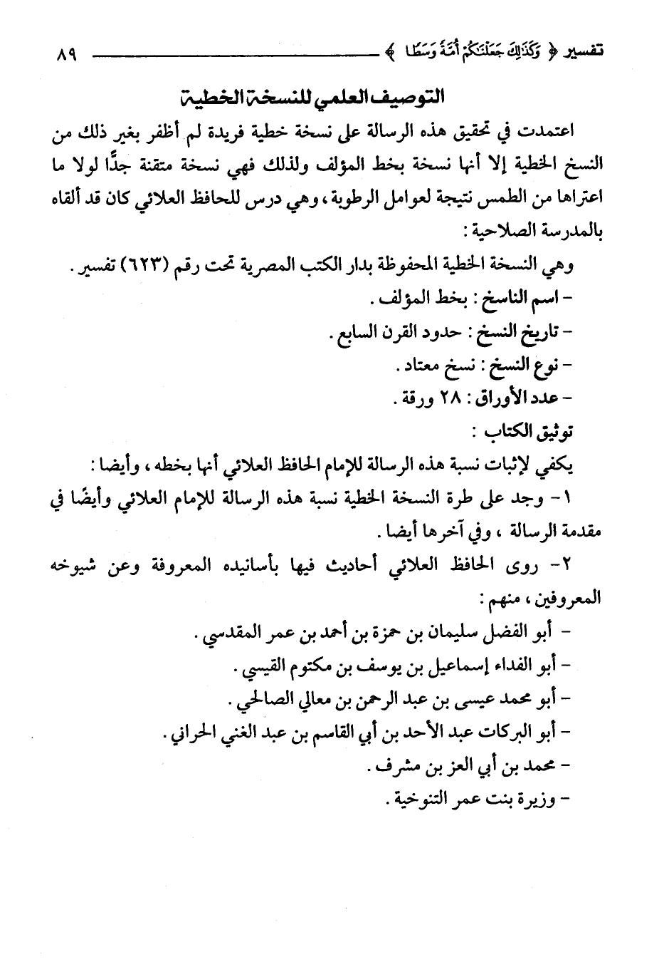 يكفي لإثبات نسبة هذه الرسالة للإمام الحافظ العلائي أنها بخطه، وأيضًا: