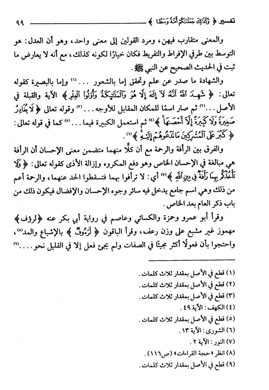والشهادة ما صدر عن علم وتحقق إما بالشعور. . . (¬1) وإما بالبصيرة كقوله تعالى: {شَهِدَ اللَّهُ أَنَّهُ لَا إِلَهَ إِلَّا هُوَ وَالْمَلَائِكَةُ وَأُولُو الْعِلْمِ} الآية والقبلة في الأصل. . . (¬2) ثم صار اسمًا للمكان المقابل للأوجه. . . (¬3) وقوله تعالى {لَا يُغَادِرُ صَغِيرَةً وَلَا كَبِيرَةً إِلَّا أَحْصَاهَا} (¬4) ثم استعمل الكبيرة فيما. . . (¬5) كما في قوله تعالى: {كَبُرَ عَلَى الْمُشْرِكِينَ مَا تَدْعُوهُمْ إِلَيْهِ} (¬6).
