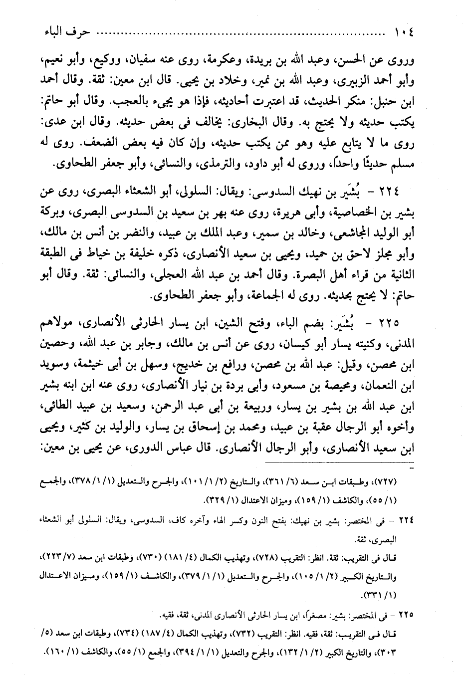 224 - فى المختصر: بشير بن نهيك: بفتح النون وكسر الهاء وآخره كاف، السدوسى، ويقال: السلولى أبو الشعثاء البصرى، ثقة.