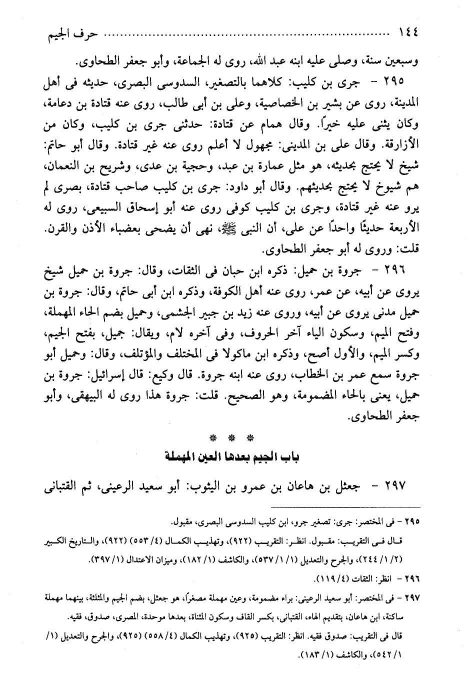 295 - فى المختصر: جرى: تصغير جرو، ابن كليب السدوسى البصرى، مقبول.