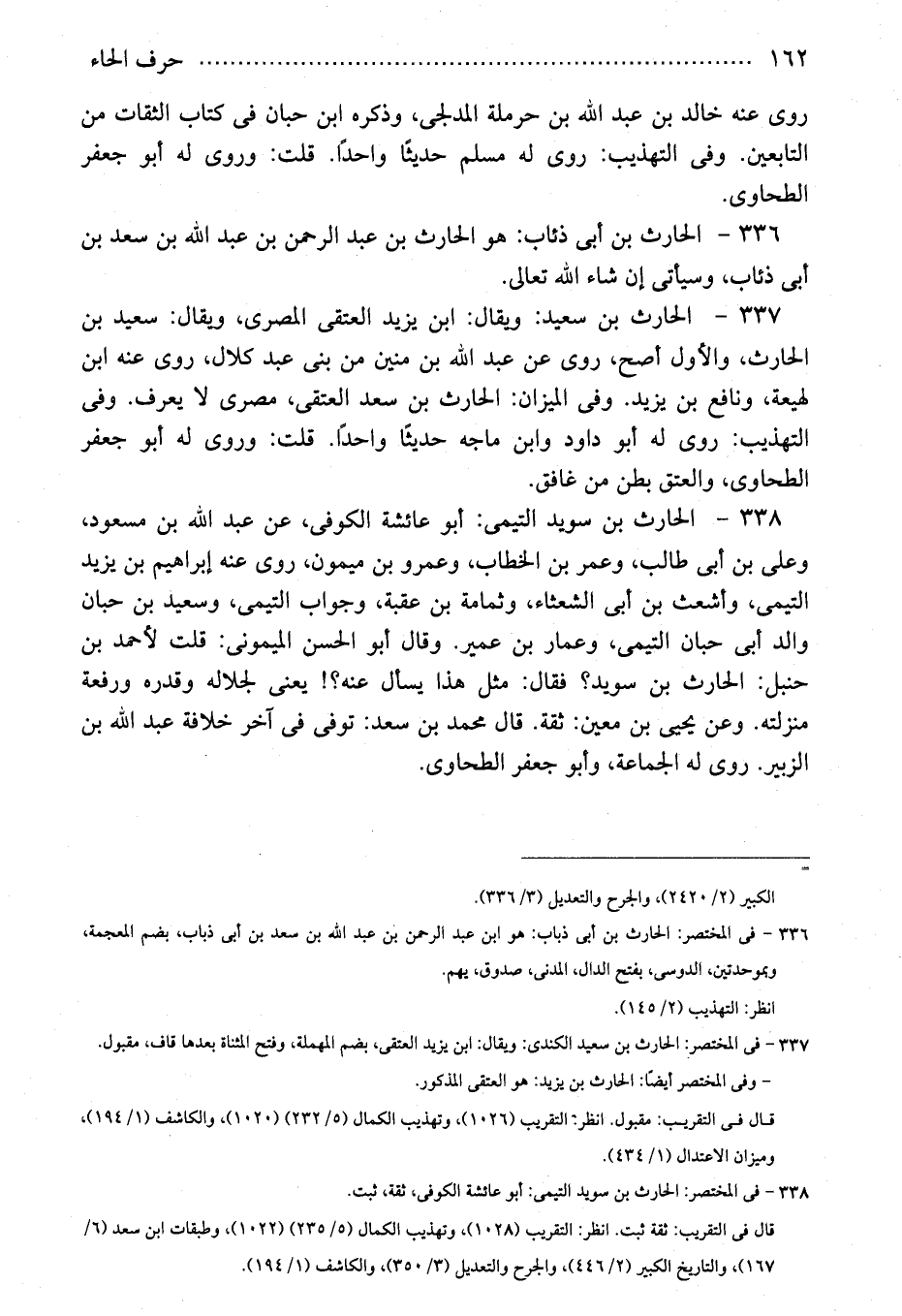 337 - فى المختصر: الحارث بن سعيد الكندى: ويقال: ابن يزيد العتقى، بضم المهملة، وفتح المثناة بعدها قاف، مقبول.