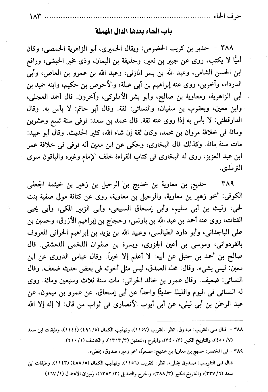 389 - فى المختصر: حديج بن معاوية بن خديج: مصغرًا، أخو زهير، صدوق، يخطىء.