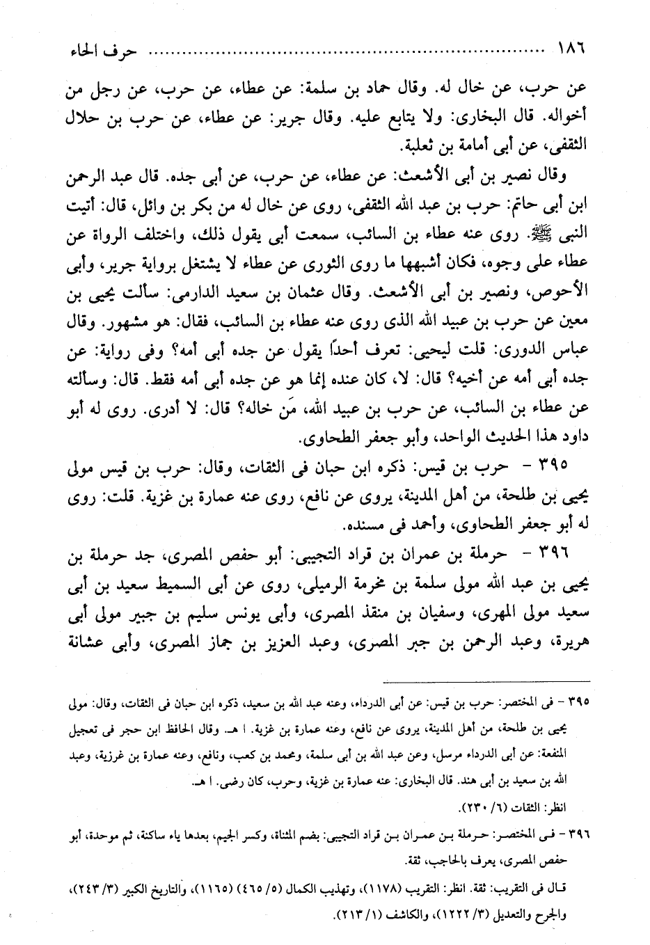 396 - فى المختصر: حرملة بن عمران بن قراد التجيبى: بضم المثناة، وكسر الجيم، بعدها ياء ساكنة، ثم موحدة، أبو حفص المصرى، يعرف بالحاجب، ثقة.