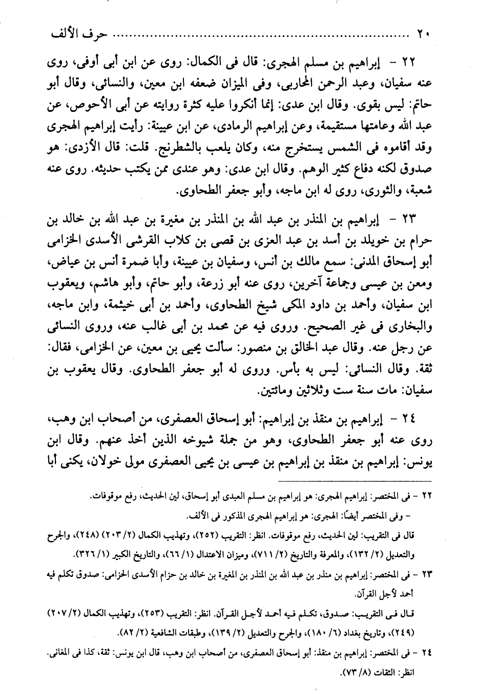 22 - فى المختصر: إبراهيم الهجرى: هو إبراهيم بن مسلم العبدى أبو إسحاق، لين الحديث، رفع موقوفات.