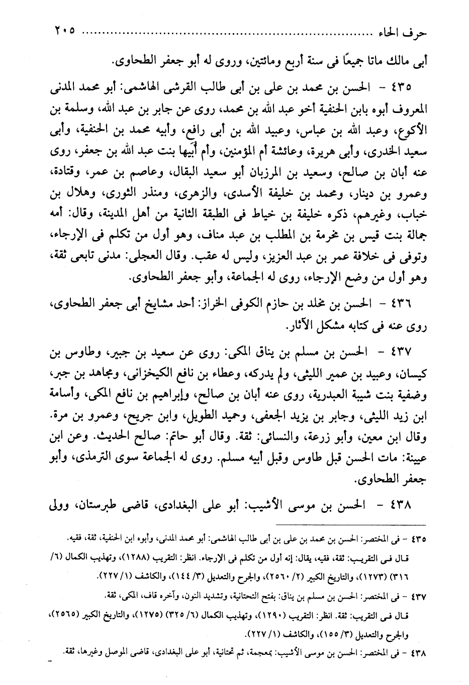 435 - فى المختصر: الحسن بن محمد بن على بن أبى طالب الهاشمى: أبو محمد المدنى، وأبوه ابن الحنفية، ثقة، فقيه.