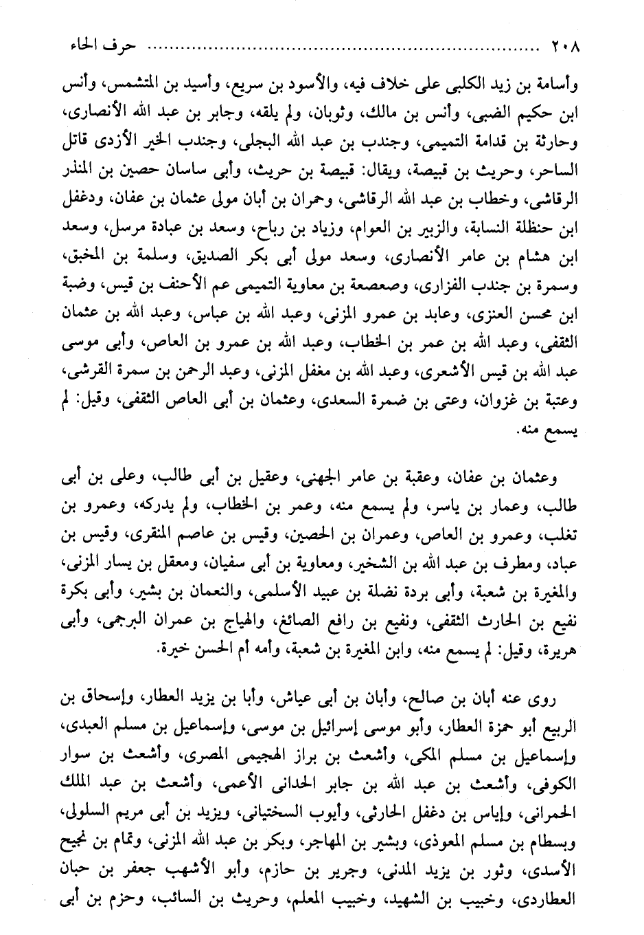 وأسامة بن زيد الكلبى على خلاف فيه، والأسود بن سريع، وأسيد بن المتشمس، وأنس ابن حكيم الضبى، وأنس بن مالك، وثوبان، ولم يلقه، وجابر بن عبد الله الأنصارى، وحارثة بن قدامة التميمى، وجندب بن عبد الله البجلى، وجندب الخير الأزدى قاتل الساحر، وحريث بن قبيصة، ويقال: قبيصة بن حريث، وأبى ساسان حصين بن المنذر الرقاشى، وخطاب بن عبد الله الرقاشى، وحمران بن أبان مولى عثمان بن عفان، ودغفل ابن حنظلة النسابة، والزبير بن العوام، وزياد بن رباح، وسعد بن عبادة مرسل، وسعد ابن هشام بن عامر الأنصارى، وسعد مولى أبى بكر الصديق، وسلمة بن المخبق، وسمرة بن جندب الفزارى، وصعصعة بن معاوية التميمى عم الأحنف بن قيس، وضبة ابن محسن العنزى، وعابد بن عمرو المزنى، وعبد الله بن عباس، وعبد الله بن عثمان الثقفى، وعبد الله بن عمر بن الخطاب، وعبد الله بن عمرو بن العاص، وأبى موسى عبد الله بن قيس الأشعرى، وعبد الله بن مغفل المزنى، وعبد الرحمن بن سمرة القرشى، وعتبة بن غزوان، وعتى بن ضمرة السعدى، وعثمان بن أبى العاص الثقفى، وقيل: لم يسمع منه.