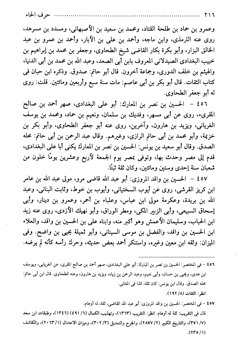 457 - فى المختصر: الحسين بن واقد المروزى: أبو عبد الله القاضى، ثقة، له أوهام.