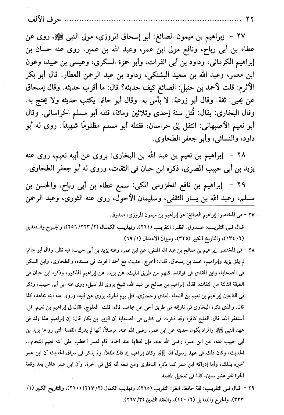27 - فى المختصر: إبراهيم الصائغ: هو إبراهيم بن ميمون المروزى، صدوق.