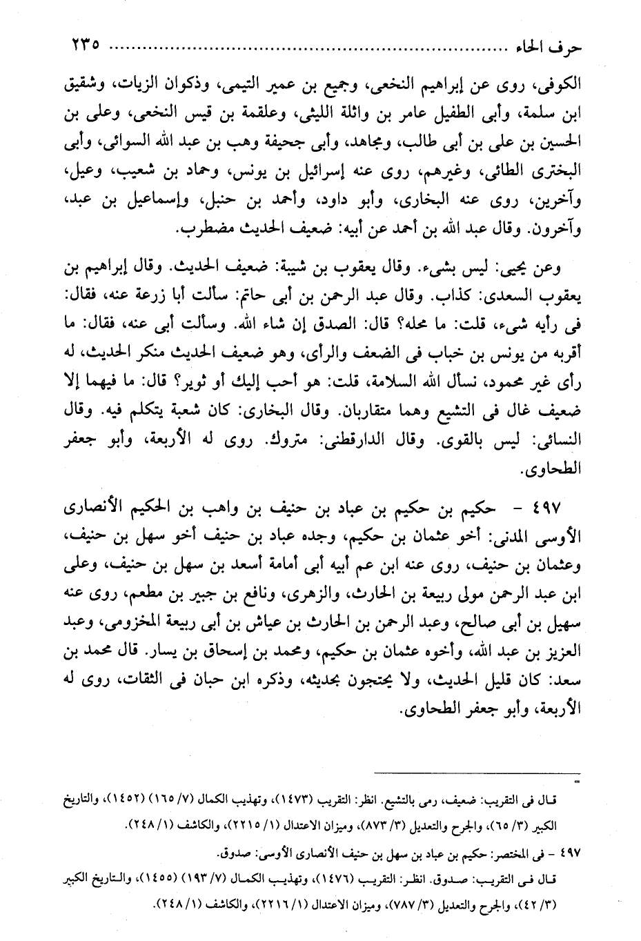 497 - فى المختصر: حكيم بن عباد بن سهل بن حنيف الأنصارى الأوسى: صدوق.
