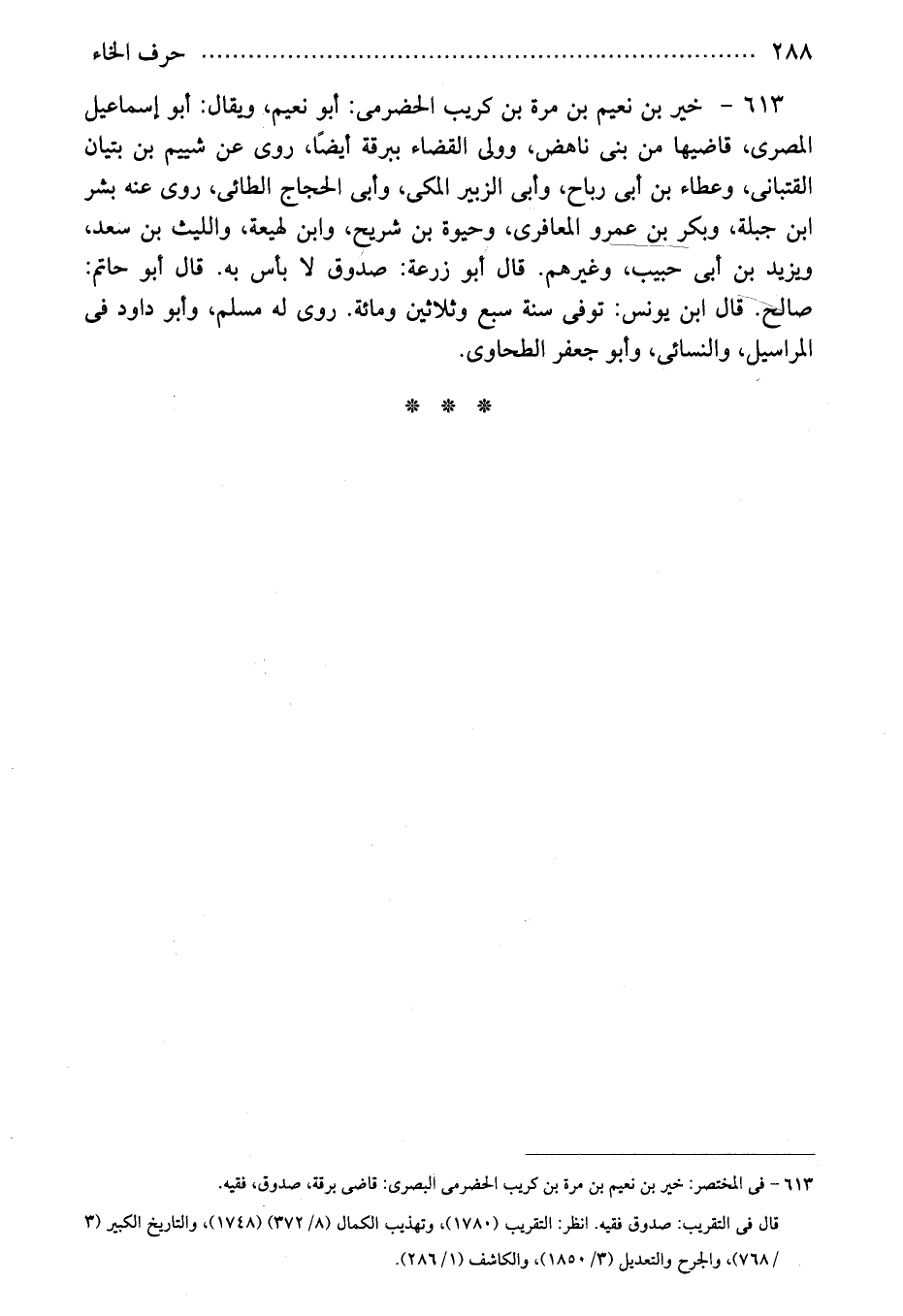613 - فى المختصر: خير بن نعيم بن مرة بن كريب الحضرمى البصرى: قاضى برقة، صدوق، فقيه.
