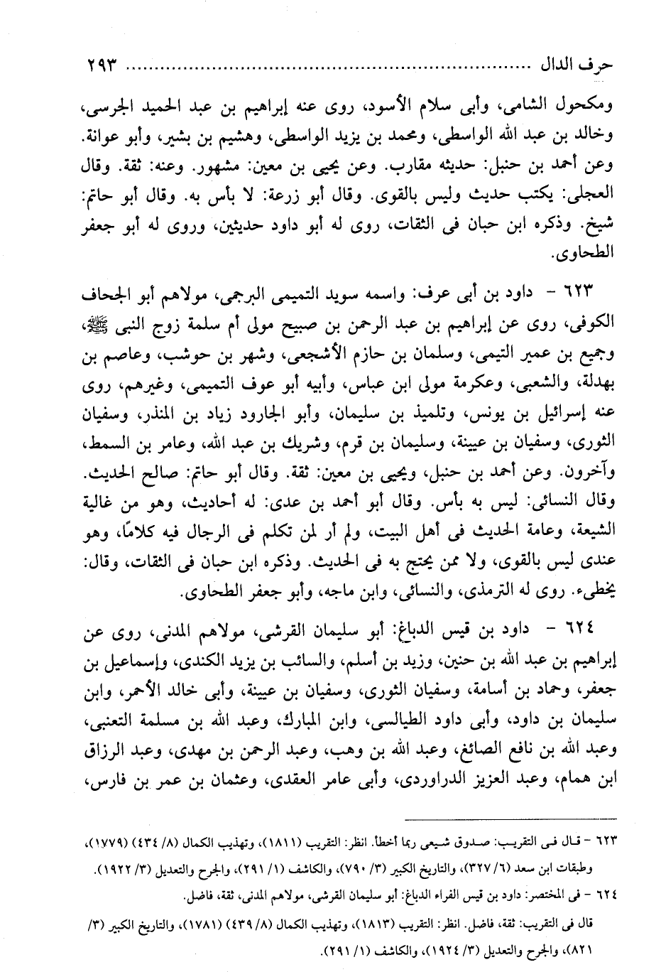 624 - فى المختصر: داود بن قيس الفراء الدباغ: أبو سليمان القرشى، مولاهم المدنى، ثقة، فاضل.