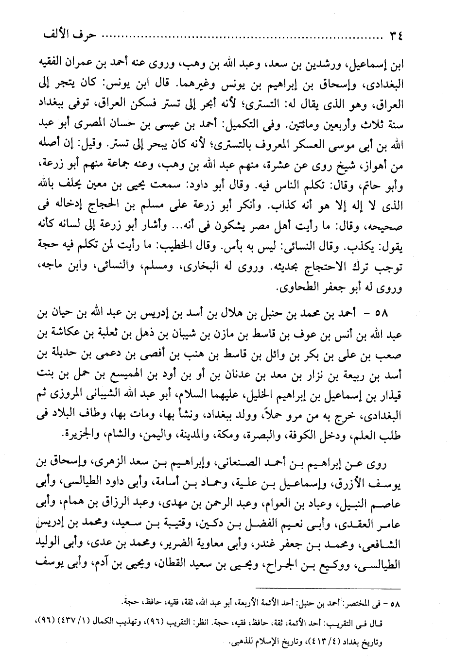 58 - فى المختصر: أحمد بن حنبل: أحد الأئمة الأربعة، أبو عبد الله، ثقة، فقيه، حافظ، حجة.