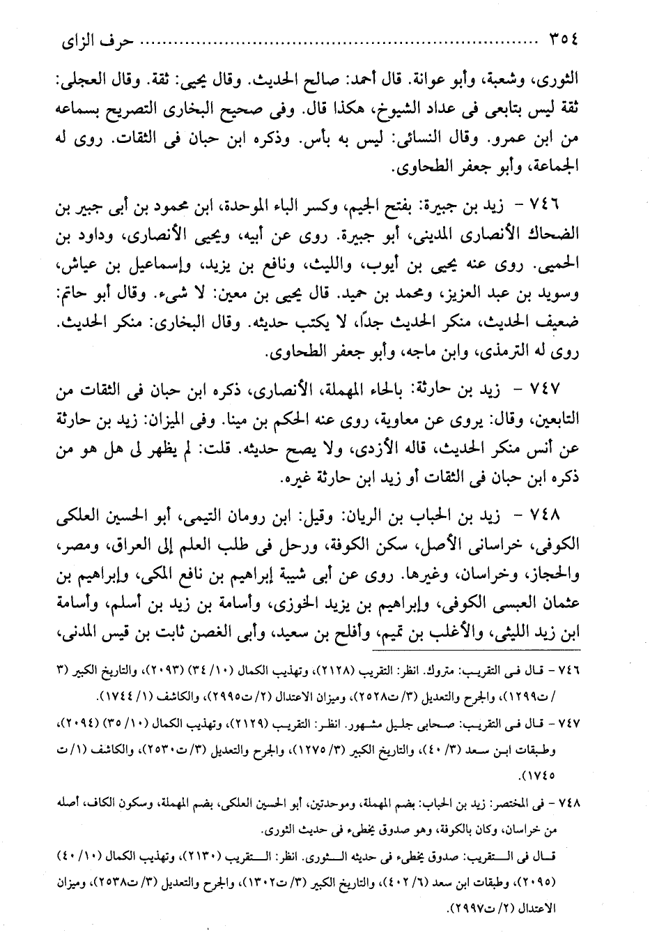 748 - فى المختصر: زيد بن الحباب: بضم المهملة، وموحدتين، أبو الحسين العلكى، بضم المهملة، وسكون الكاف، أصله من خراسان، وكان بالكوفة، وهو صدوق يخطىء فى حديث الثورى.