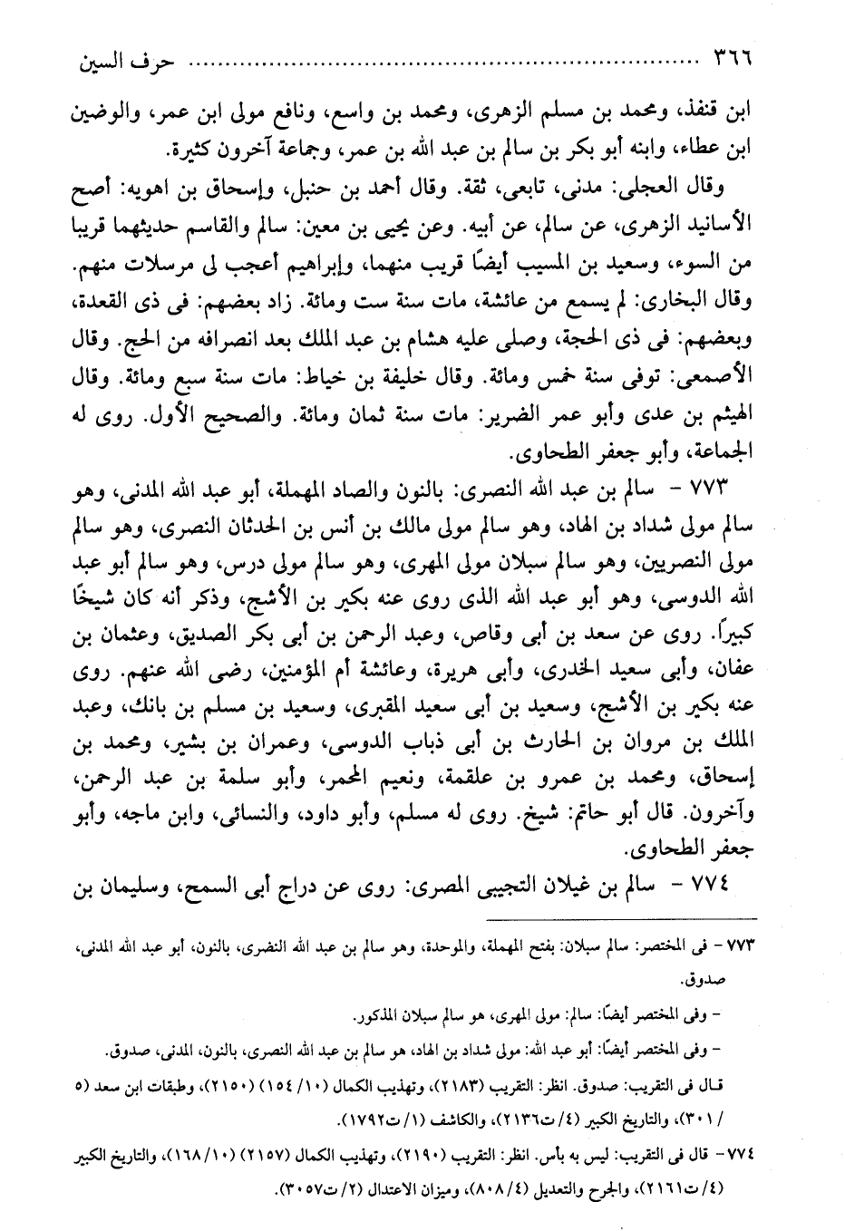 773 - فى المختصر: سالم سبلان: بفتح المهملة، والموحدة، وهو سالم بن عبد الله النضرى، بالنون، أبو عبد الله المدنى، صدوق.