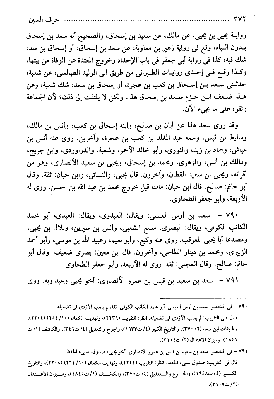 791 - فى المختصر: سعد بن سعيد بن قيس بن عمرو الأنصارى: أخو يحيى، صدوق، سيىء الحفظ.