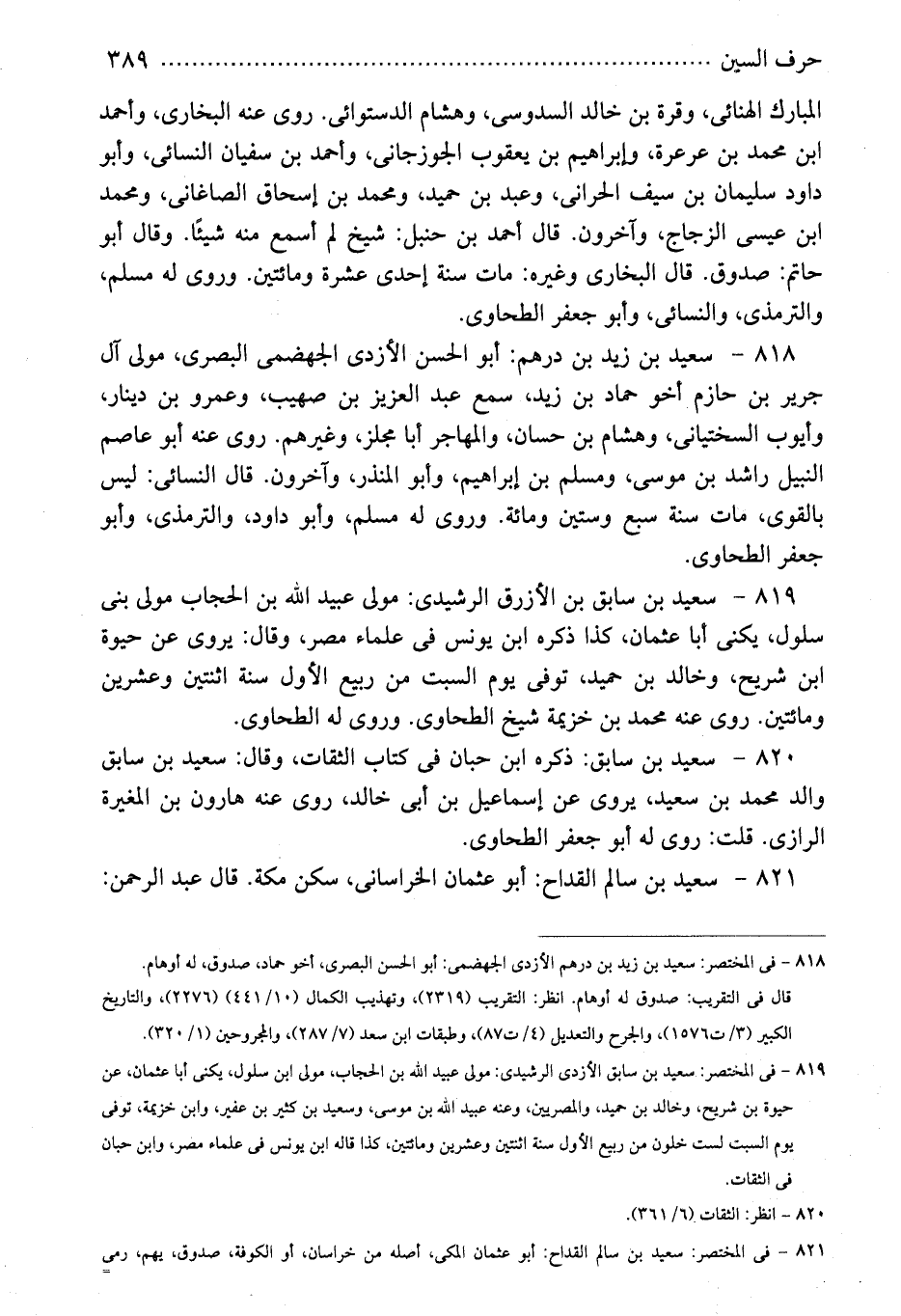 818 - فى المختصر: سعيد بن زيد بن درهم الأزدى الجهضمى: أبو الحسن البصرى، أخو حماد، صدوق، له أوهام.