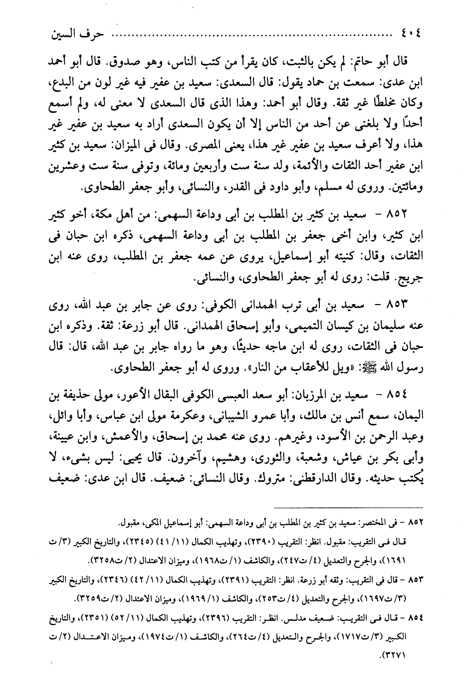 852 - فى المختصر: سعيد بن كثير بن المطلب بن أبى وداعة السهمى: أبو إسماعيل المكى، مقبول.