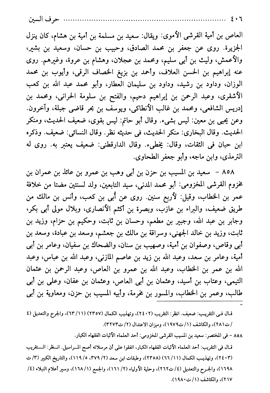 858 - فى المختصر: سعيد بن المسيب القرشى المخزومى: أحد العلماء الأثبات الفقهاء الكبار.