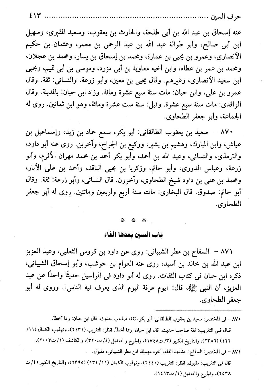 871 - فى المختصر: السفاح: بتشديد الفاء، آخره مهملة، ابن مطر الشيبانى، مقبول.