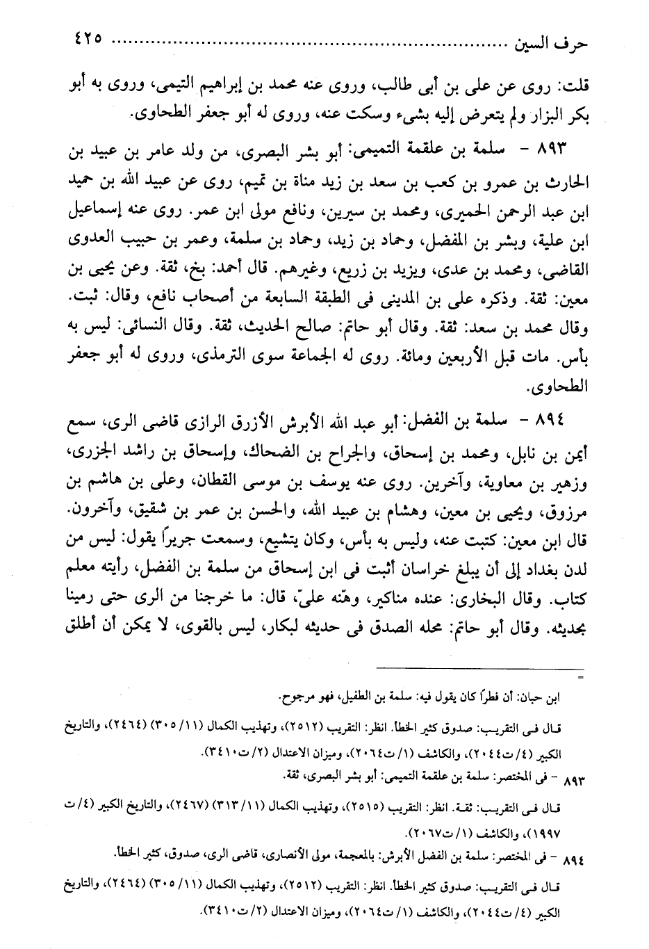 894 - فى المختصر: سلمة بن الفضل الأبرش: بالمعجمة، مولى الأنصارى، قاضى الرى، صدوق، كثير الخطأ.
