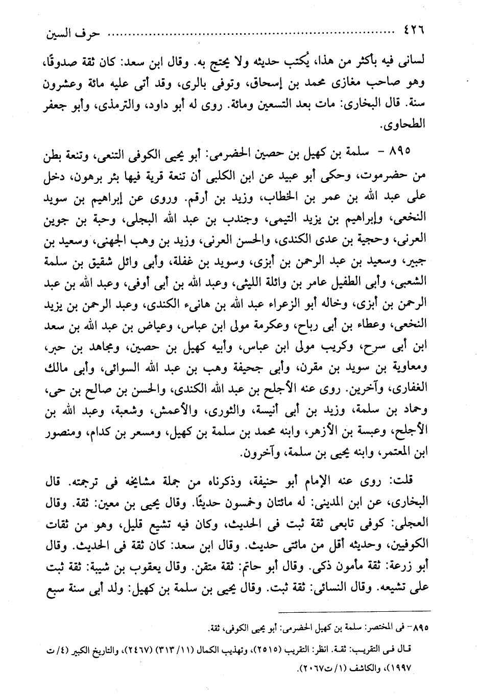 895 - فى المختصر: سلمة بن كهيل الحضرمى: أبو يحيى الكوفى، ثقة.