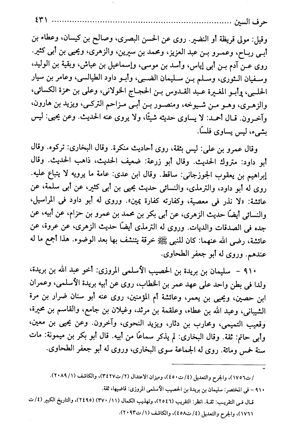 910 - فى المختصر: سليمان بن بريدة بن الحصيب الأسلمى المروزى: قاضيها، ثقة.