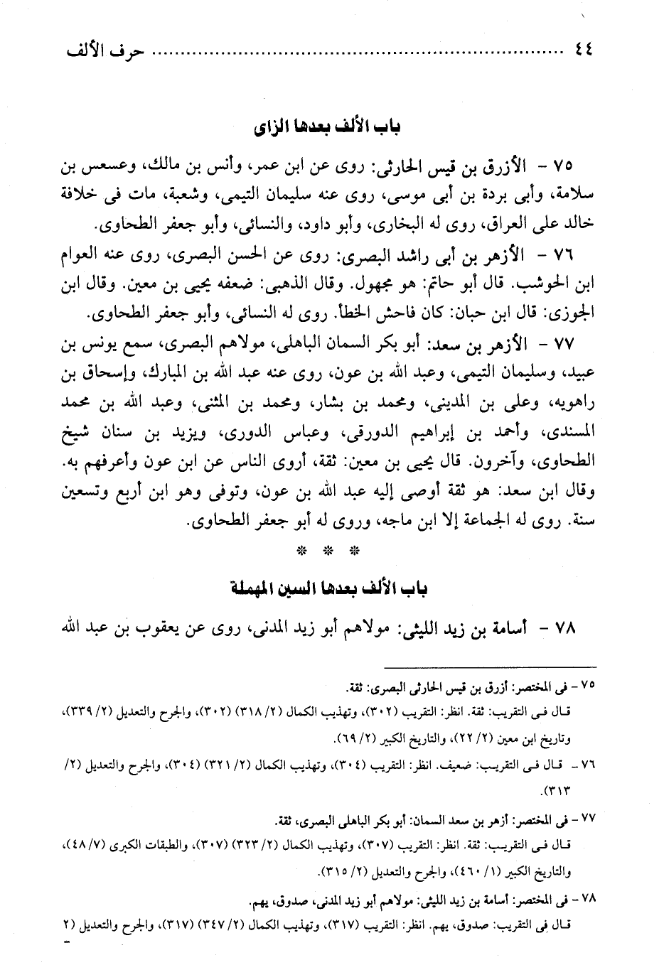 77 - فى المختصر: أزهر بن سعد السمان: أبو بكر الباهلى البصرى، ثقة.