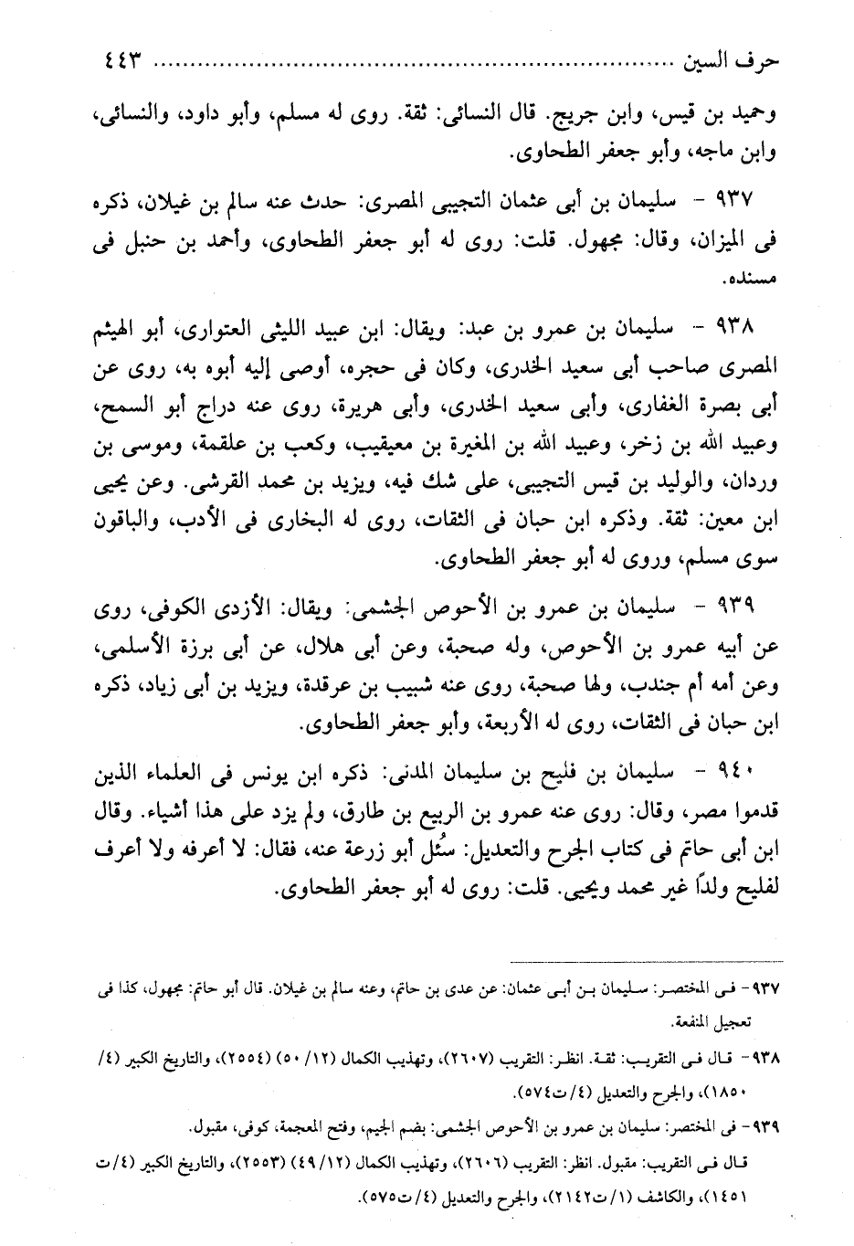 939 - فى المختصر: سليمان بن عمرو بن الأحوص الجشمى: بضم الجيم، وفتح المعجمة، كوفى، مقبول.