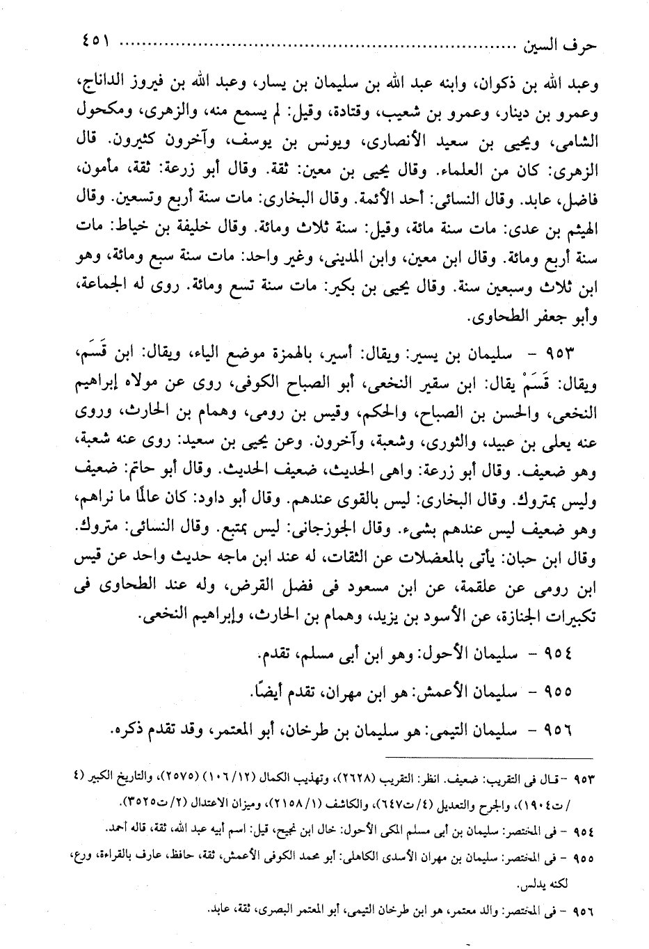 956 - سليمان التيمى: هو سليمان بن طرخان، أبو المعتمر، وقد تقدم ذكره.