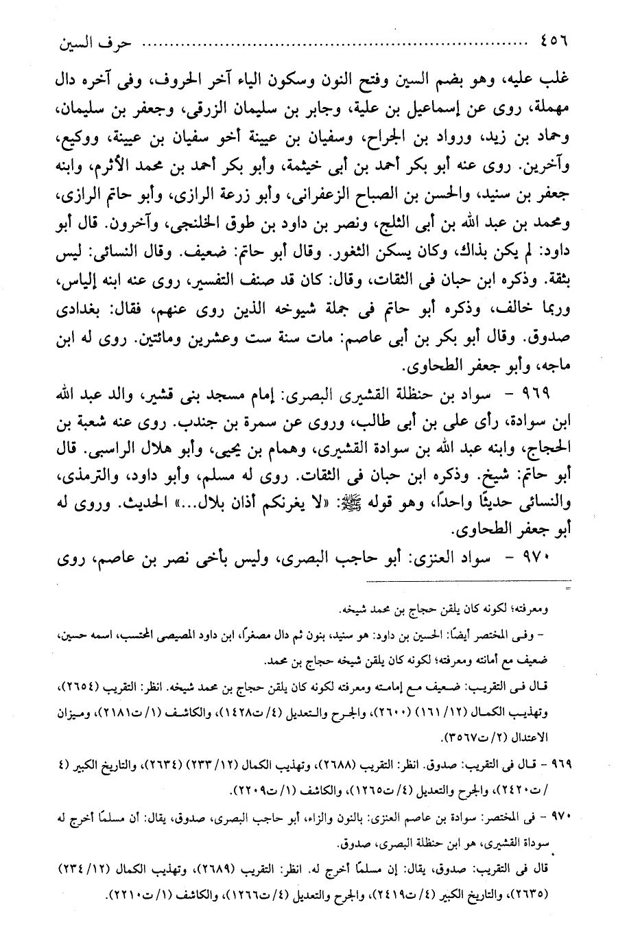 970 - فى المختصر: سوادة بن عاصم العنزى: بالنون والزاء، أبو حاجب البصرى، صدوق، يقال: أن مسلمًا أخرج له سوداة القشيرى، هو ابن حنظلة البصرى، صدوق.