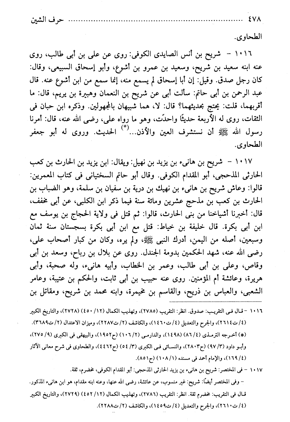 1017 - فى المختصر: شريح بن هانىء بن يزيد الحارثى المذحجى: أبو المقدام الكوفى، مخضرم، ثقة.