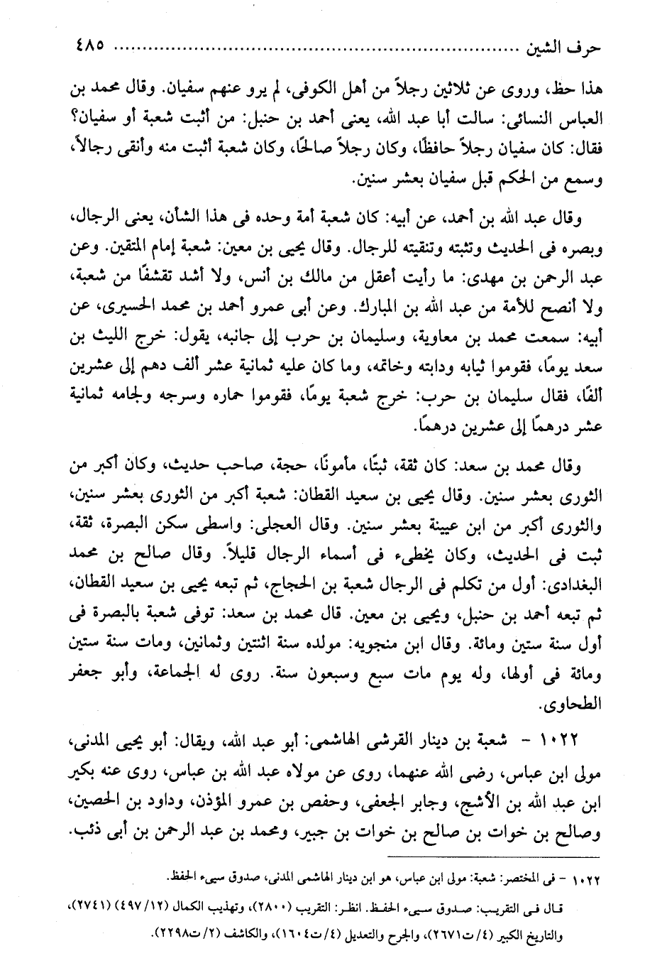 1022 - شعبة بن دينار القرشى الهاشمى: أبو عبد الله، ويقال: أبو يحيى المدنى، مولى ابن عباس، رضى الله عنهما، روى عن مولاه عبد الله بن عباس، روى عنه بكير ابن عبد الله بن الأشج، وجابر الجعفى، وحفص بن عمرو المؤذن، وداود بن الحصين، وصالح بن خوات بن صالح بن خوات بن جبير، ومحمد بن عبد الرحمن بن أبى ذئب.