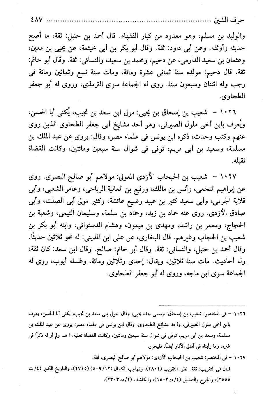 1027 - فى المختصر: شعيب بن الحبحاب الأزدى: مولاهم أبو صالح البصرى، ثقة.