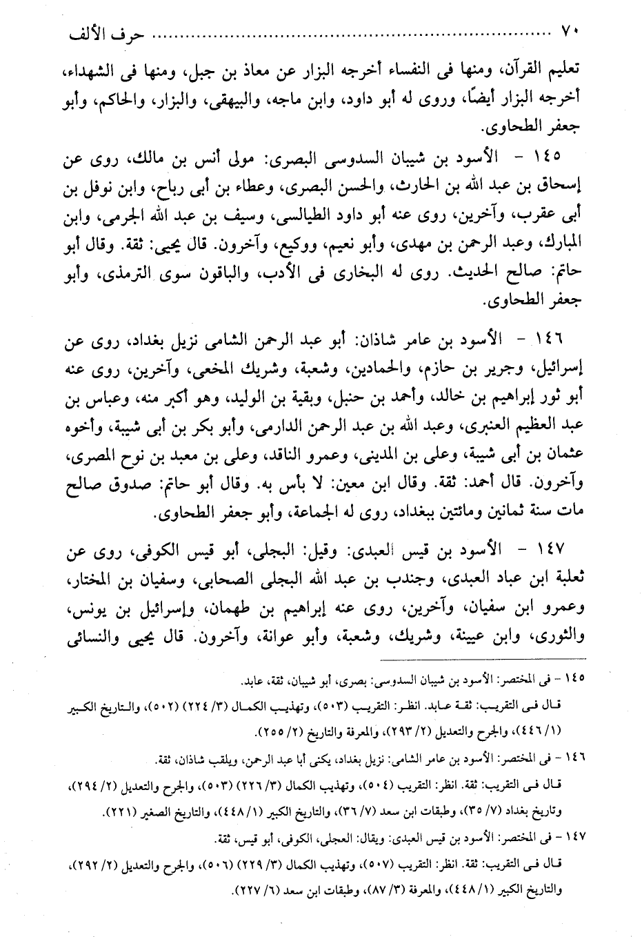 146 - فى المختصر: الأسود بن عامر الشامى: نزيل بغداد، يكنى أبا عبد الرحمن، ويلقب شاذان، ثقة.