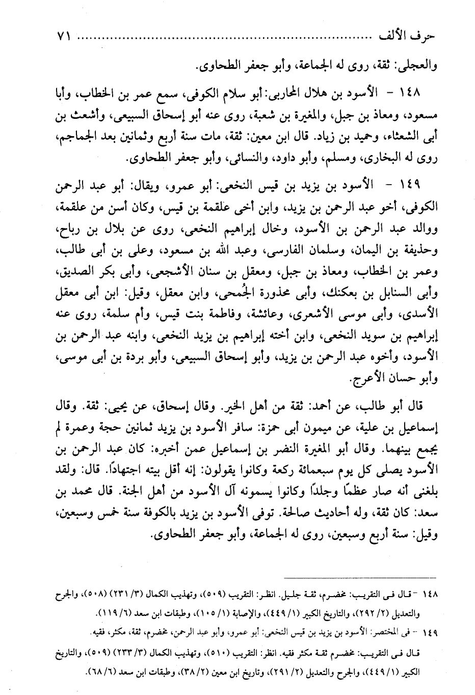 149 - فى المختصر: الأسود بن يزيد بن قيس النخعى: أبو عمرو، وأبو عبد الرحمن، مخضرم، ثقة، مكثر، فقيه.