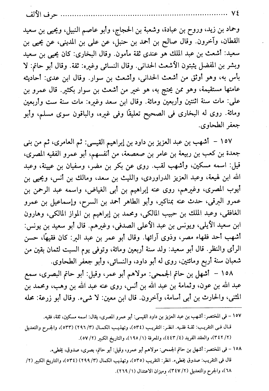 157 - فى المختصر: أشهب بن عبد العزيز بن داود القيسى: أبو عمرو المصرى، يقال: اسمه مسكين، ثقة، فقيه.