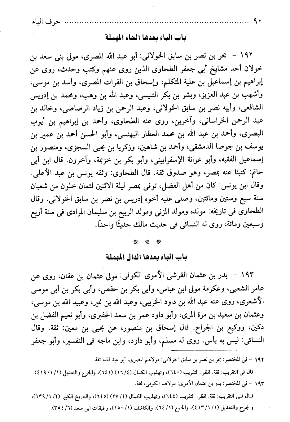 192 - فى المختصر: بحر بن نصر بن سابق الخولانى: مولاهم المصرى، أبو عبد الله، ثقة.