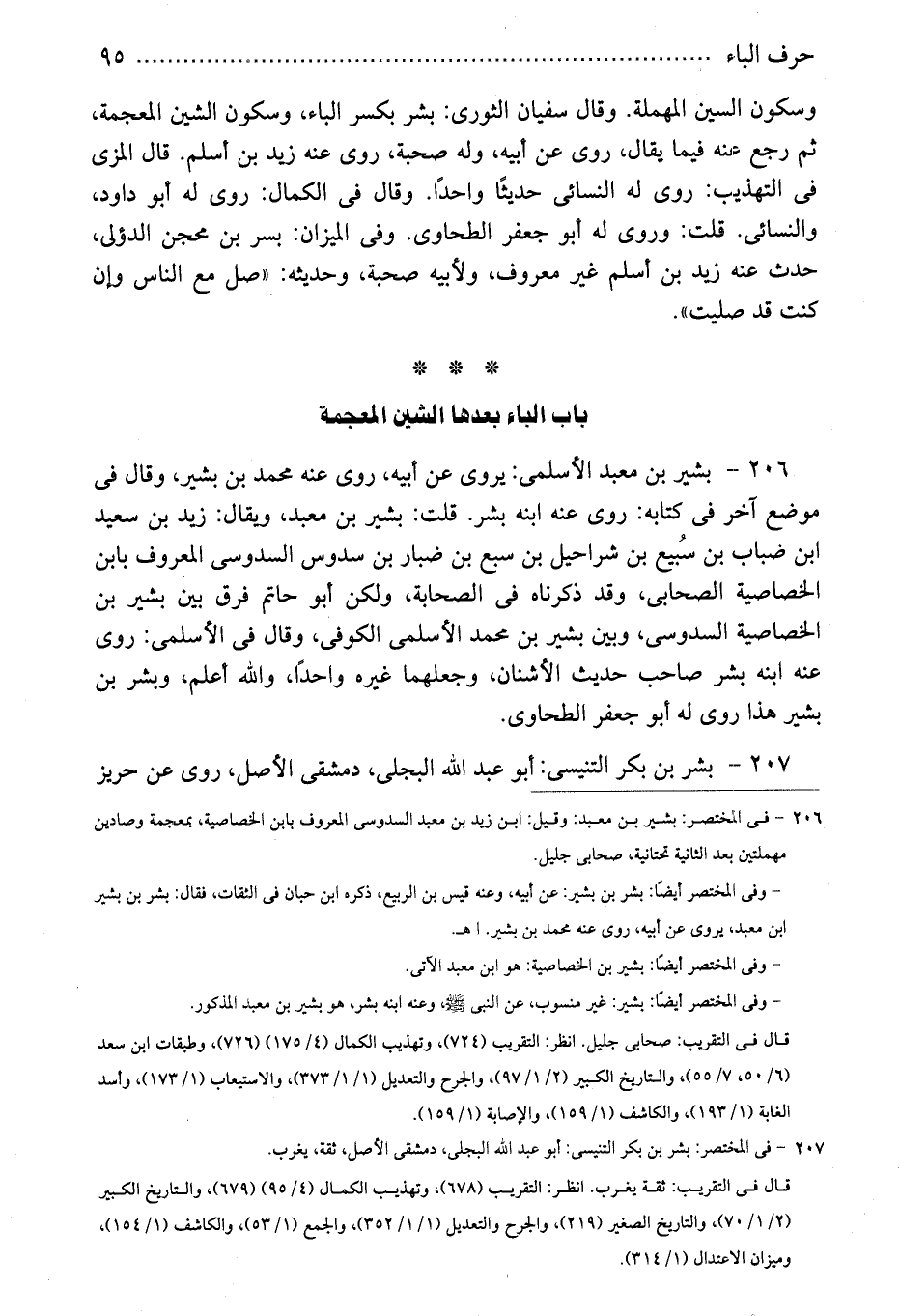206 - فى المختصر: بشير بن معبد: وقيل: ابن زيد بن معبد السدوسى المعروف بابن الخصاصية، بمعجمة وصادين مهملتين بعد الثانية تحتانية، صحابى جليل.