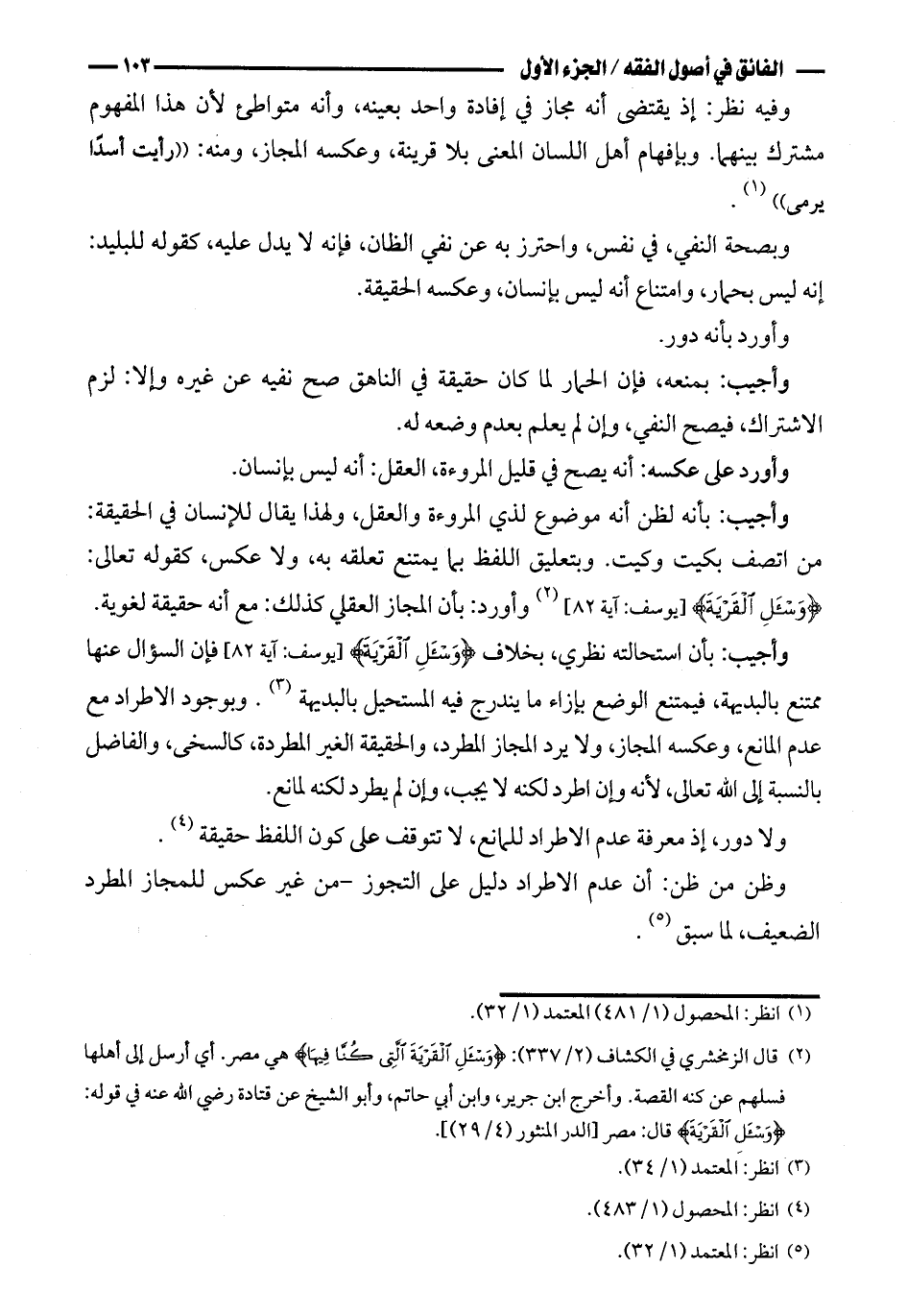 وأجيب: بأن استحالته نظري، بخلاف {وسئل القرية} [يوسف: آية ٨٢] فإن السؤال عنها ممتنع بالبديهة فيمتنع الوضع بإزاء ما يندرج فيه المستحيل بالبديهة. وبوجود الاطراد مع عدم المانع، وعكسه المجاز، ولا يرد المجاز المطرد، والحقيقة الغير المطردة، كالسخى، والفاضل بالنسبة إلى الله تعالى، لأنه وإن اطرد لكنه لا يجب، وإن لم يطرد لكنه لمانع.