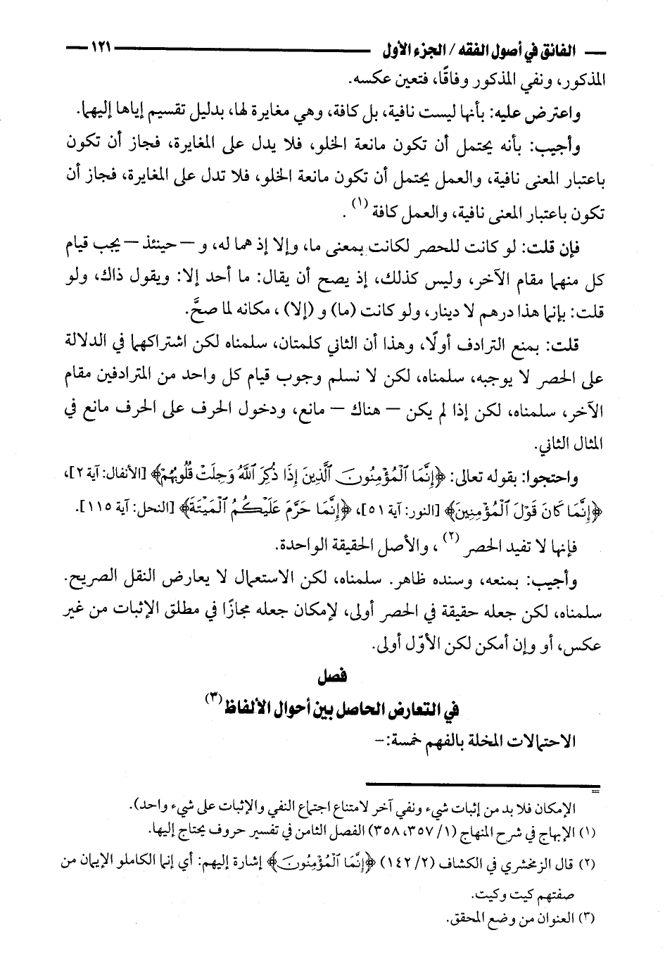 قلت: بمنع الترادف أولًا، وهذا أن الثاني كلمتان، سلمناه لكن اشتراكهما في الدلالة على الحصر لا يوجبه، سلمناه، لكن لا نسلم وجوب قيام كل واحد من المترادفين مقام الآخر، سلمناه، لكن إذا لم يكن - هناك - مانع، ودخول الحرف على الحرف مانع في المثال الثاني.