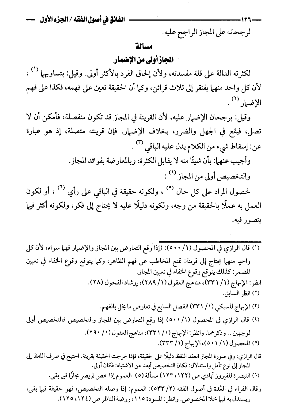 وقيل: برجحان الإضمار عليه، لأن القرينة في المجاز قد تكون منفصلة، فأمكن أن لا تصل، فيقع في الجهل والضرر، بخلاف الإضمار. فإن قرينته متصلة، إذ هو عبارة عن: إسقاط شيء من الكلام يدل عليه الباقي.