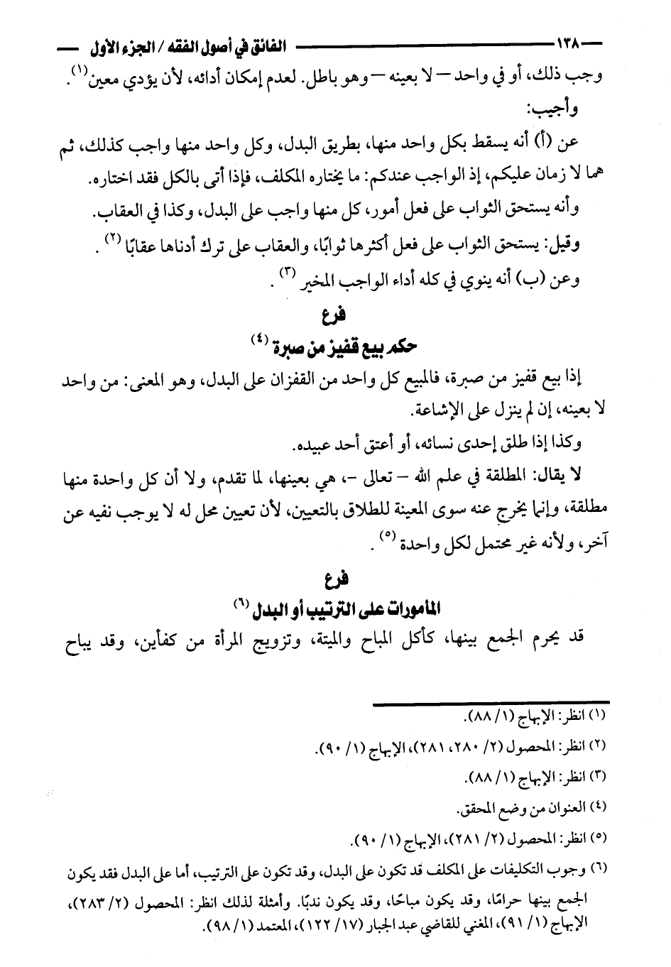 إذا بيع قفيز من صبرة، فالمبيع كل واحد من القفزان على البدل، وهو المعنى: من واحد لا بعينه، إن لم ينزل على الإشاعة.