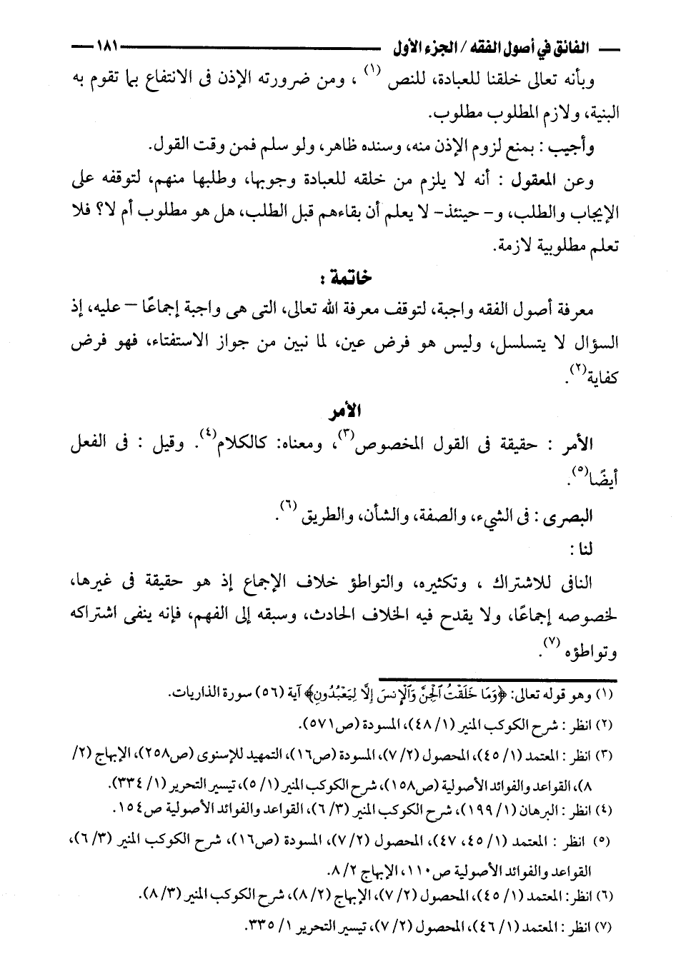 الأمر: حقيقة القول المخصوص، ومعناه: كالكلام. وقيل: في الفعل أيضًا.