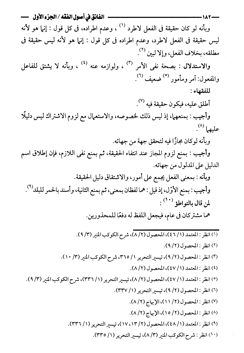 وبأنه: بمعنى الفعل يجمع على أمور، والاشتقاق دليل الحقيقة.